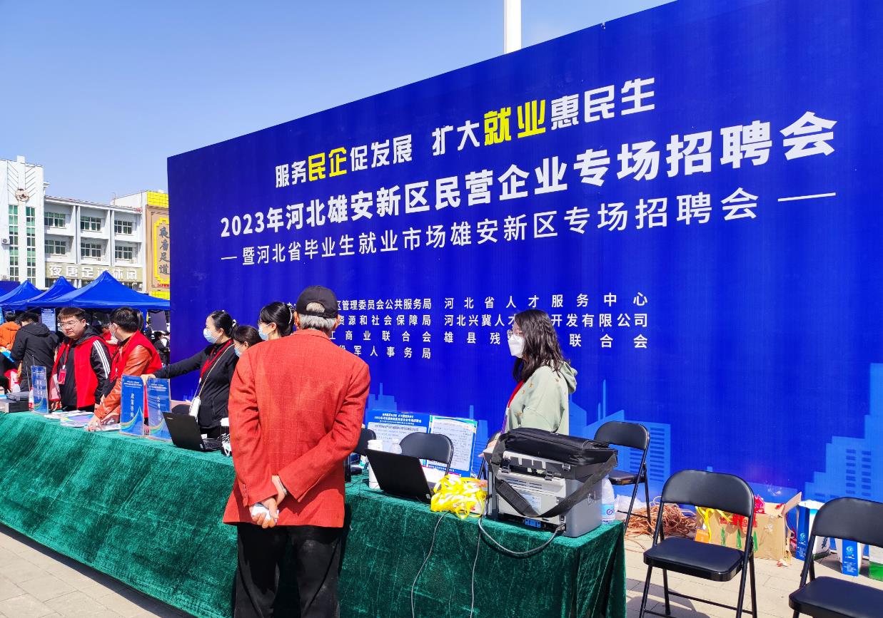 為深入貫徹黨的二十大精神,落實(shí)黨中央、國務(wù)院,省委省政府穩(wěn)就業(yè)決策部署,充分發(fā)揮個(gè)體工商戶私營企業(yè)就業(yè)創(chuàng)業(yè)主渠道和生力軍作用,引導(dǎo)高校畢業(yè)生、退役軍人等群體面向民營企業(yè)就業(yè),幫助民營企業(yè)解決招工穩(wěn)工難題,促進(jìn)民營經(jīng)濟(jì)高質(zhì)量發(fā)展,由河北雄安新區(qū)管理委員會公共服務(wù)局與河北省人才服務(wù)中心共同主辦,雄縣人力資源和社會保障局、安新縣人力資源和社會保障局、容城縣人力資源和社會保障局、河北興冀人才資源開發(fā)有限公司聯(lián)合承辦的2023年河北雄安新區(qū)民營企業(yè)專場招聘會暨河北省畢業(yè)生就業(yè)市場雄安新區(qū)專場招聘會于4月26日正式啟動。