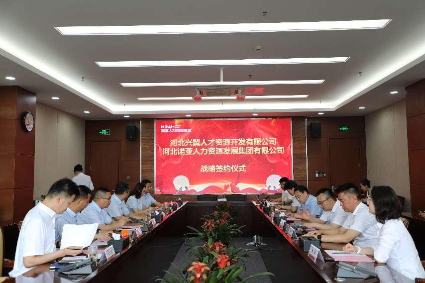 5月21日,河北招標(biāo)集團興冀人才資源開發(fā)有限公司(簡稱興冀人才)與河北諾亞人力資源發(fā)展集團有限公司(簡稱諾亞集團)在石家莊國際人才城舉行戰(zhàn)略簽約儀式,宣告兩大行業(yè)領(lǐng)軍企業(yè)正式聯(lián)袂,攜手探索人力資源服務(wù)創(chuàng)新模式,為業(yè)界帶來新鮮活力。興冀人才黨總支書記、董事長張廣輝,黨總支副書記、總經(jīng)理趙君鋒,諾亞集團黨委書記、董事長王光軍,總經(jīng)理張云雷等共同出席簽約儀式。