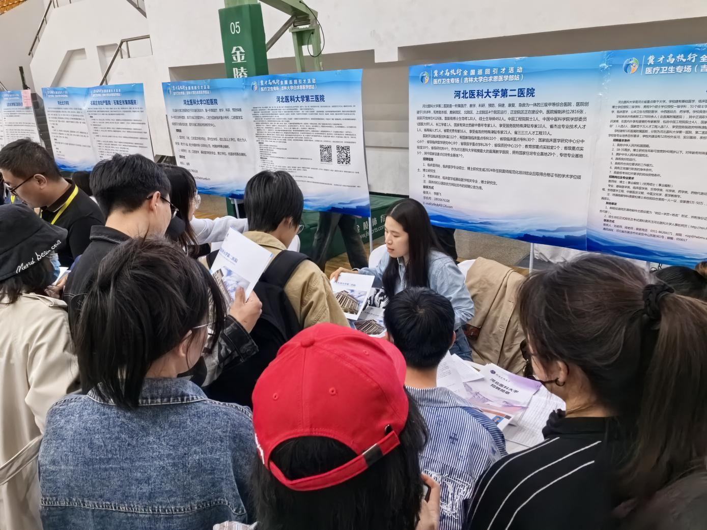 5月8日至9日,河北省人社廳、省衛(wèi)健委共同在哈爾濱醫(yī)科大學、吉林大學舉辦“冀才高校行”全國巡回引才醫(yī)療衛(wèi)生專場活動,42家省內(nèi)重點醫(yī)院、醫(yī)療衛(wèi)生類用人單位組團赴外引才。