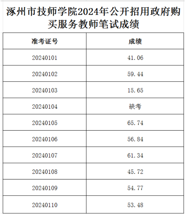 附:涿州市技師學(xué)院公開(kāi)招用政府購(gòu)買服務(wù)教師筆試成績(jī)