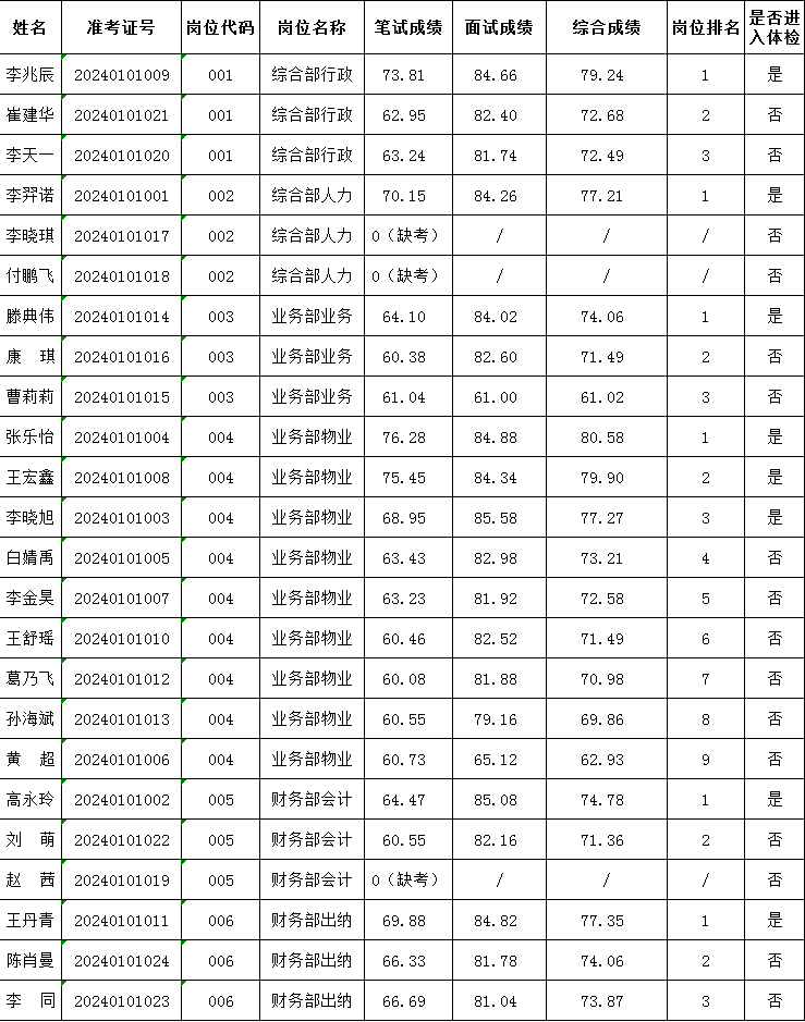 根據(jù)《河北滄發(fā)資產(chǎn)管理集團有限公司所屬滄州市筑夢房屋租賃有限公司2024年度第3批員工招聘公告》規(guī)定,河北滄發(fā)資產(chǎn)管理集團有限公司所屬滄州市筑夢房屋租賃有限公司2024年度第3批員工招聘面試于2024年8月06日完成?,F(xiàn)將綜合成績與進入體檢人員名單進行公示。